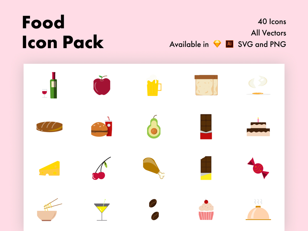 Incredible set of 40 unique, colorful and attractive food icons that represents your business on the web or print. The icons are meticulously crafted and are ready to make your designs shine. All icons are drawn by hand and designed into perfection.