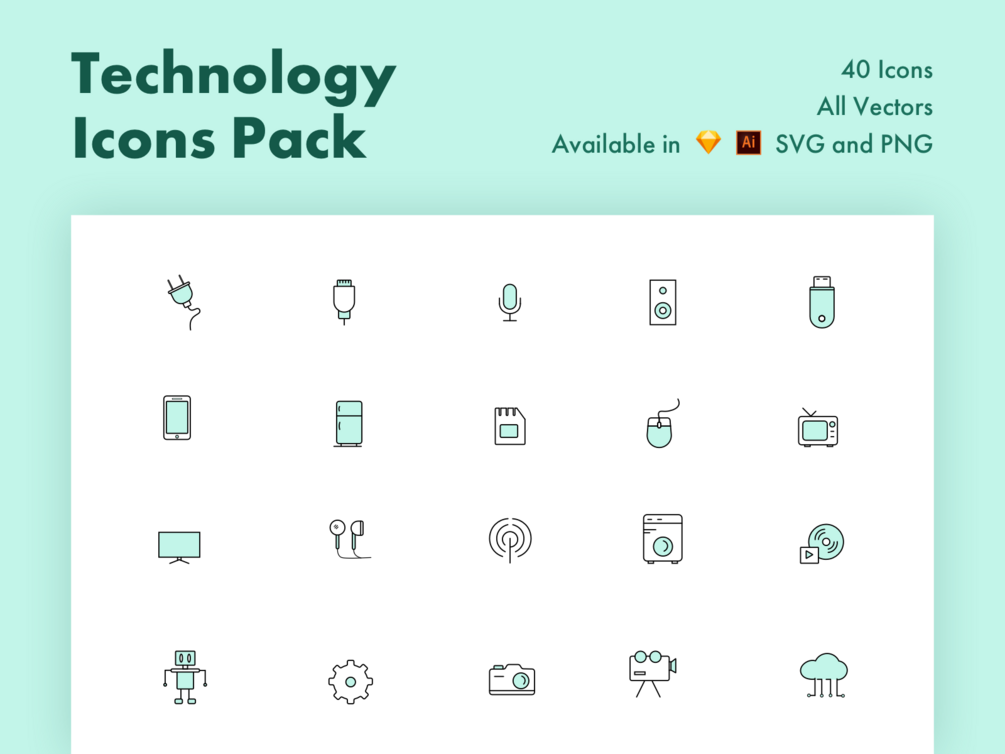 Amazing pack of 40 icons with modest and elegant designs. Each icons have richness in detail and are compatible with AI and Sketch. Comes in PNG and SVG format.
